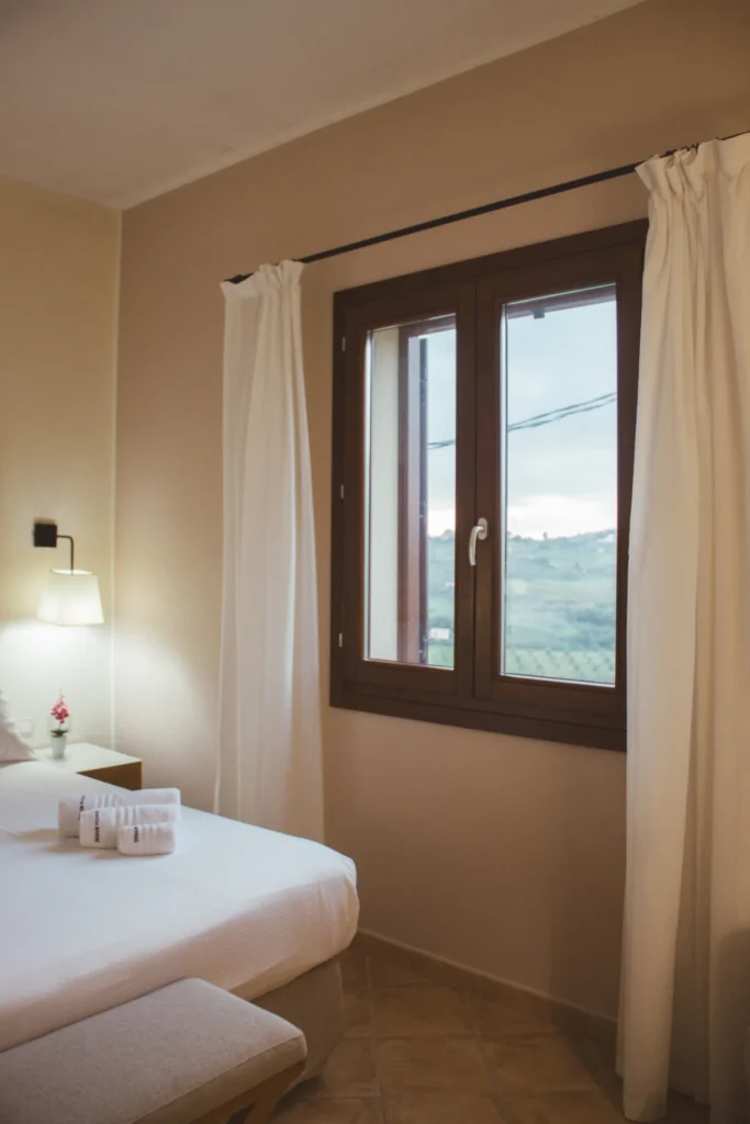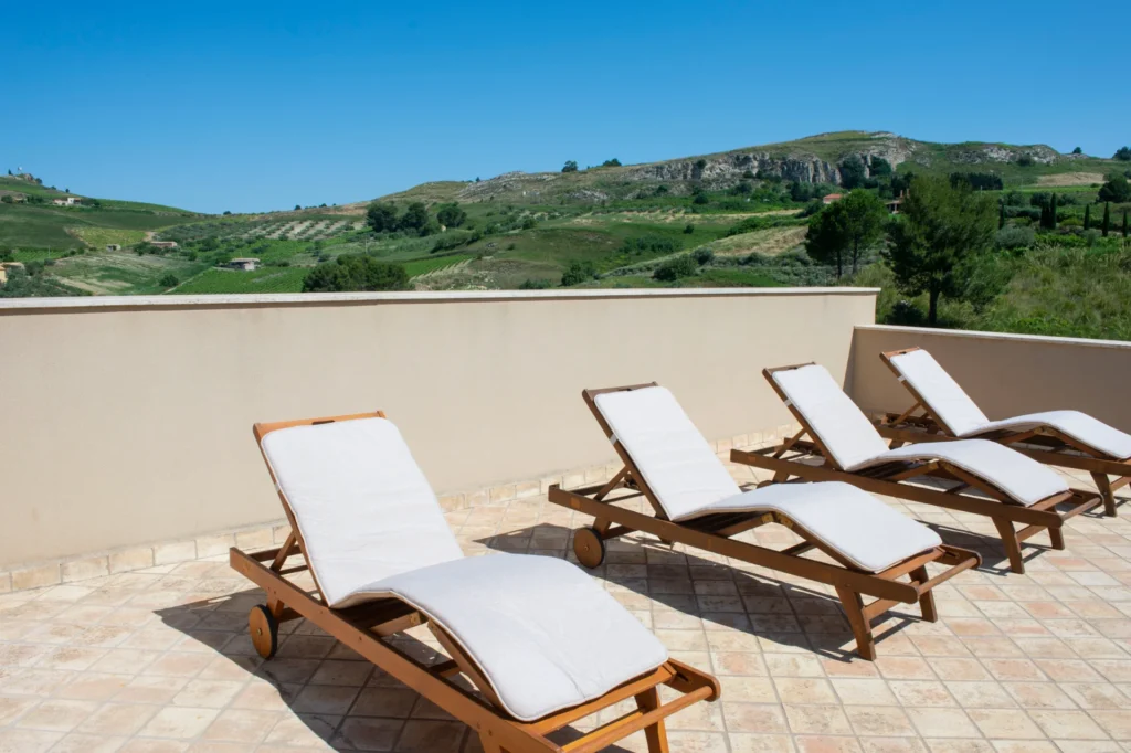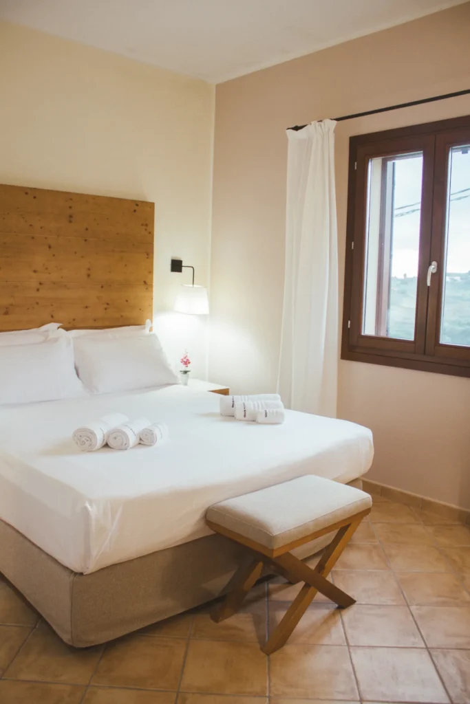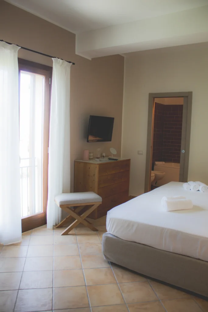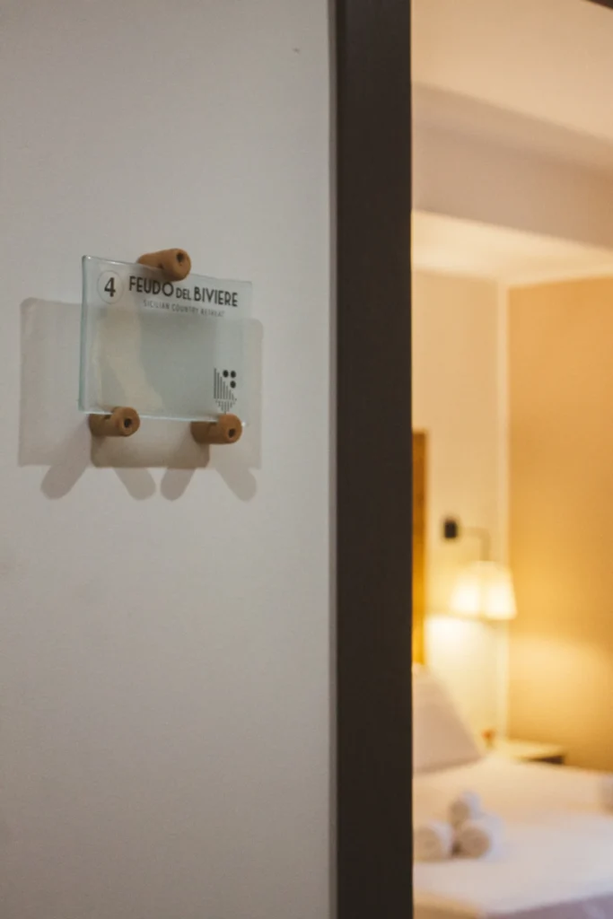 La camera Premium è la camera di chi vuole godere a pieno della vista panoramica sulla Valle della Riserva Integrale e dei vigneti che circondano il Feudo del Biviere. Ogni terrazza è arredata con due comode chaise longue in legno, ideali per la lettura e per ammirare il cielo stellato notturno accompagnati dal canto estivo delle cicale.