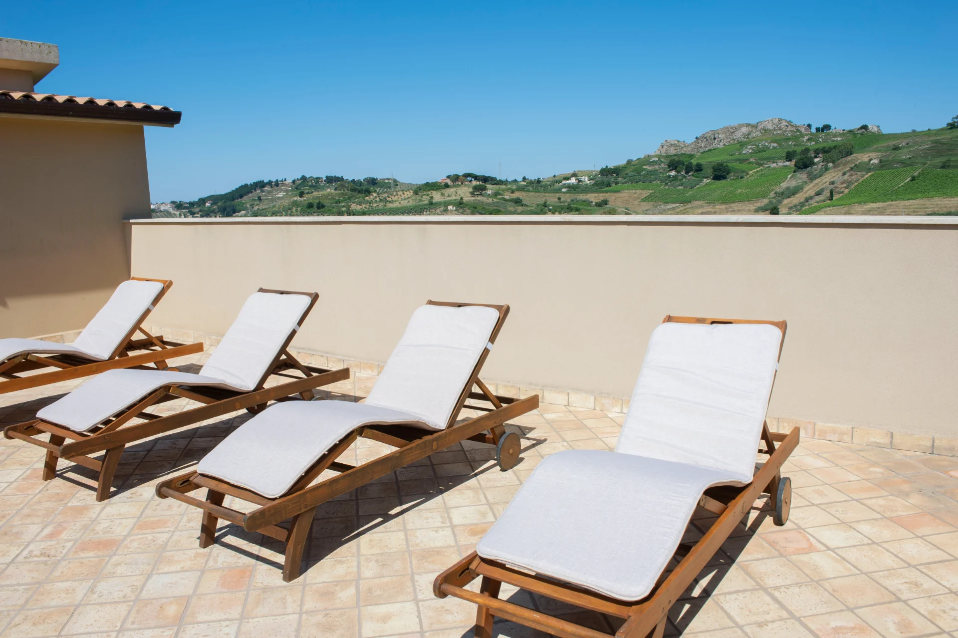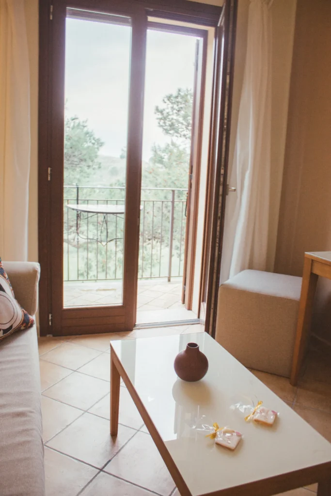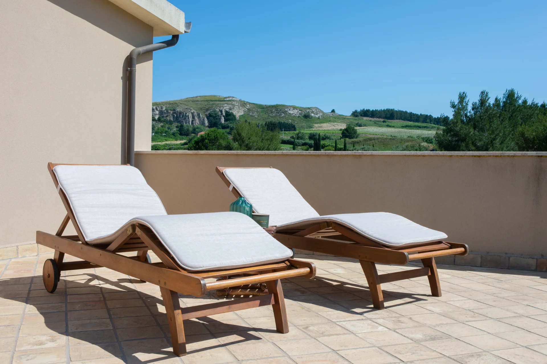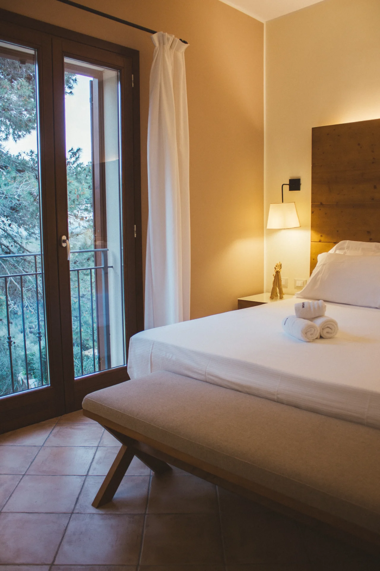 La camera Premium è la camera di chi vuole godere a pieno della vista panoramica sulla Valle della Riserva Integrale e dei vigneti che circondano il Feudo del Biviere. Ogni terrazza è arredata con due comode chaise longue in legno, ideali per la lettura e per ammirare il cielo stellato notturno accompagnati dal canto estivo delle cicale.