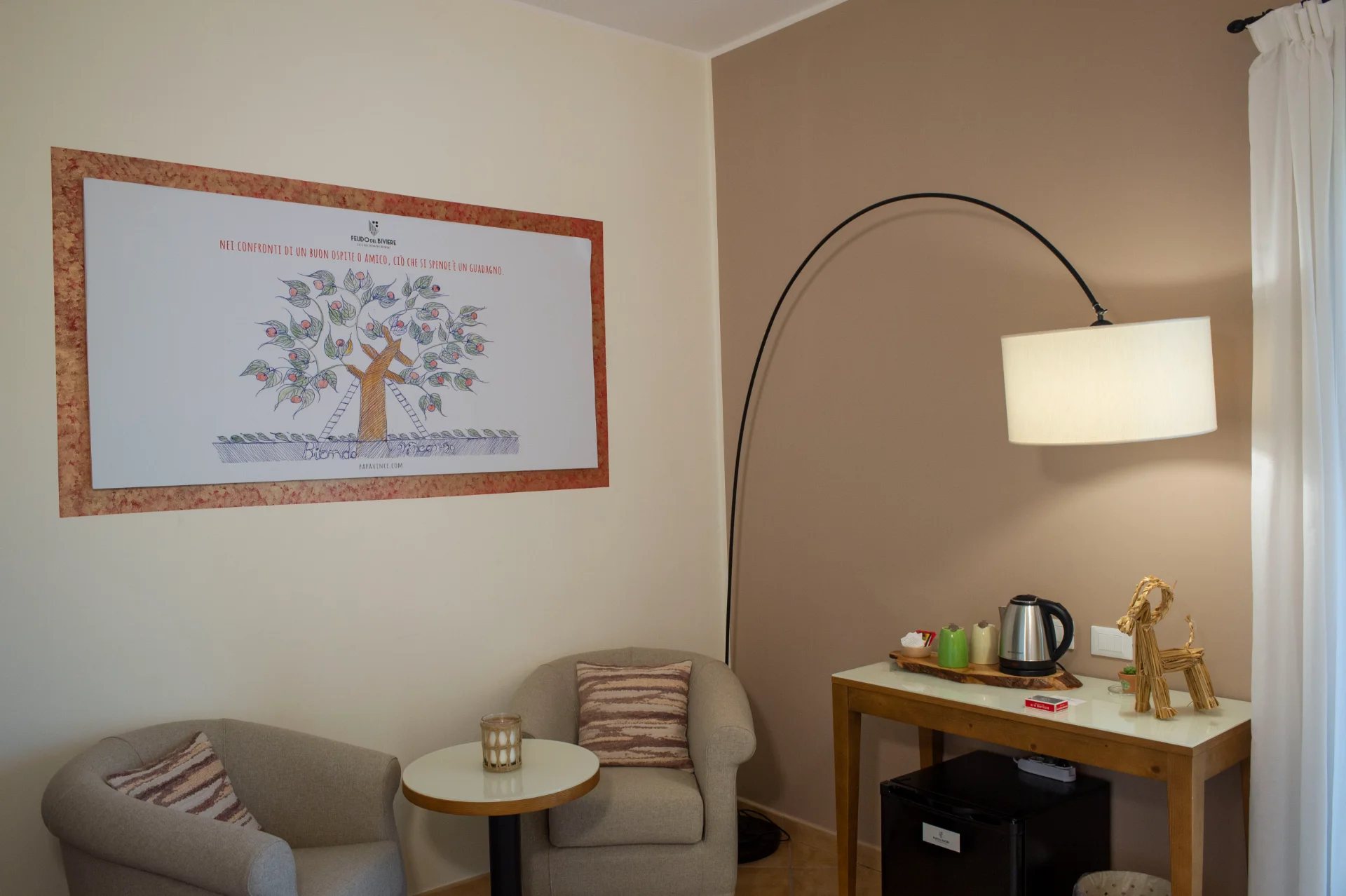 È un angolo di paradiso, un luogo fuori dal comune. La struttura è accogliente, arredata con gusto ed eleganza, dotata di tutti i comfort. È il posto ideale per chi desidera rilassarsi un paio di giorni, immersi nella natura, tra vigneti e un bellissimo bosco. Ci si sente come a casa, grazie alle attenzioni di Gabriella e Caterina che si prendono cura degli ospiti. La colazione e la cena, ottime e in piena filosofia del posto con prodotti freschi e km0, si fanno intorno un grande tavolo conviviale.