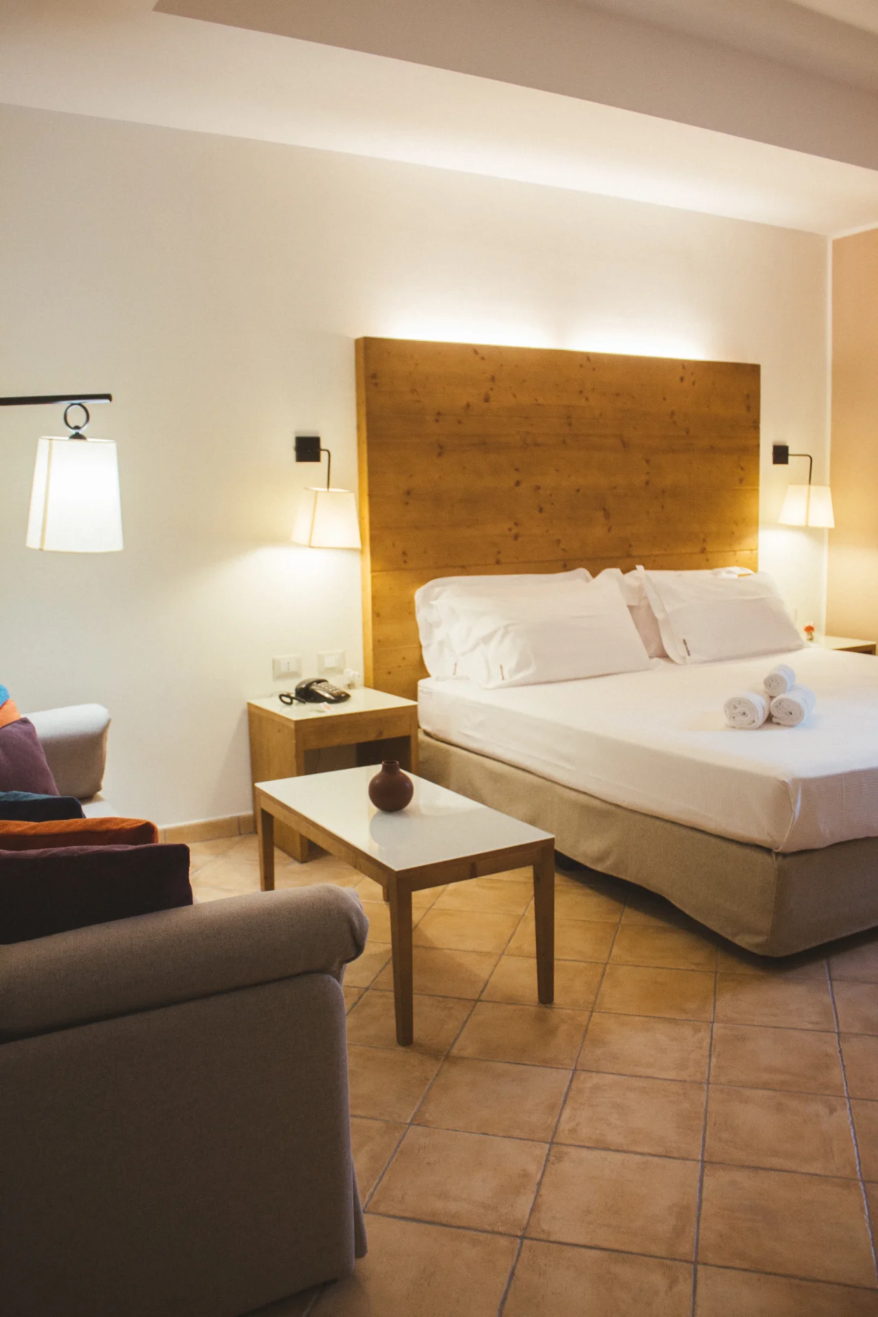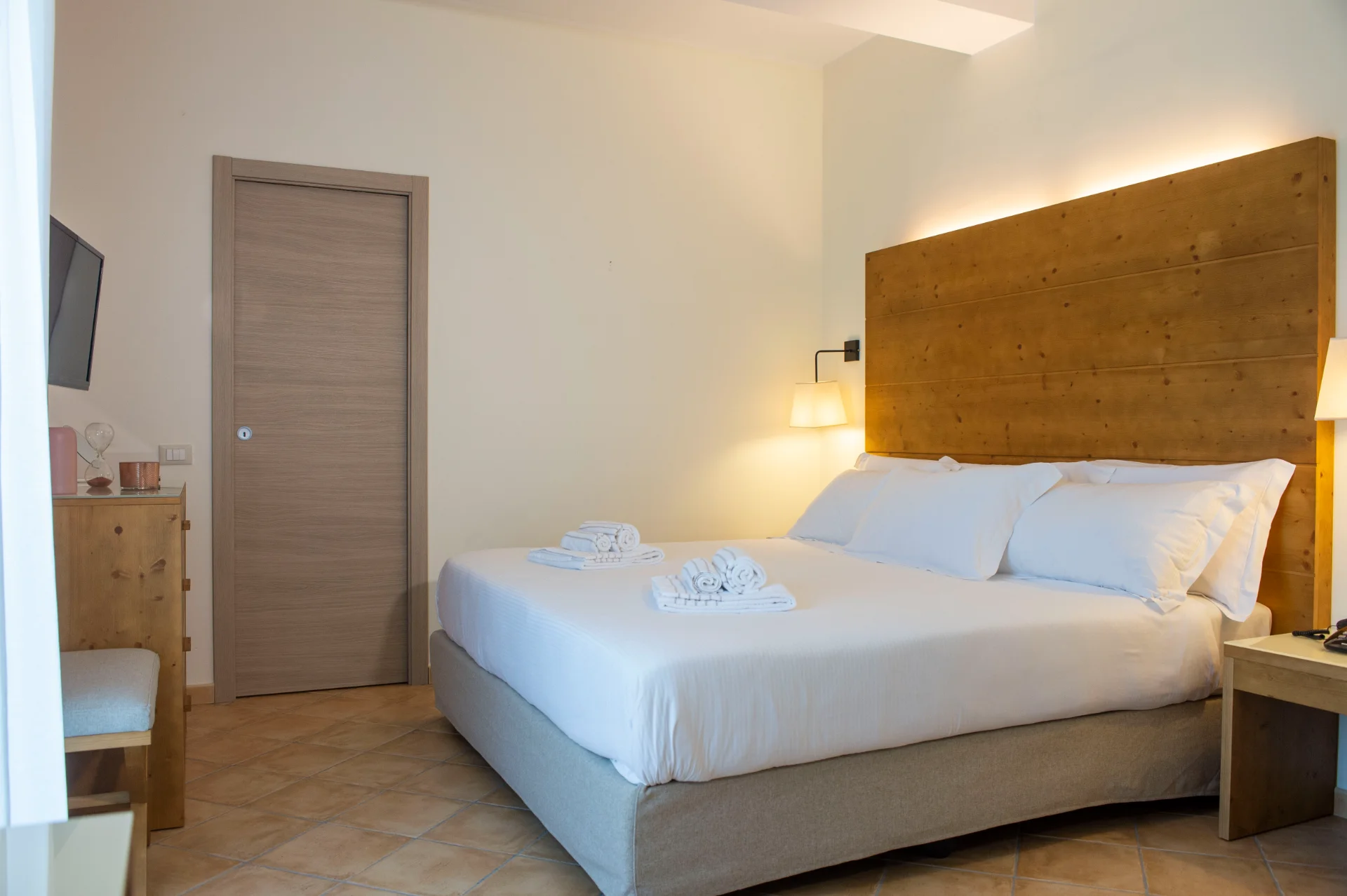La Doppia Superior è la camera ideale per soggiorni brevi alla scoperta del territorio trapanese e del relax, da soli o in coppia. Elegantemente arredata, in maniera sobria: legni naturali e colori tenui e impreziosite da opere d'arte di artisti contemporanei.